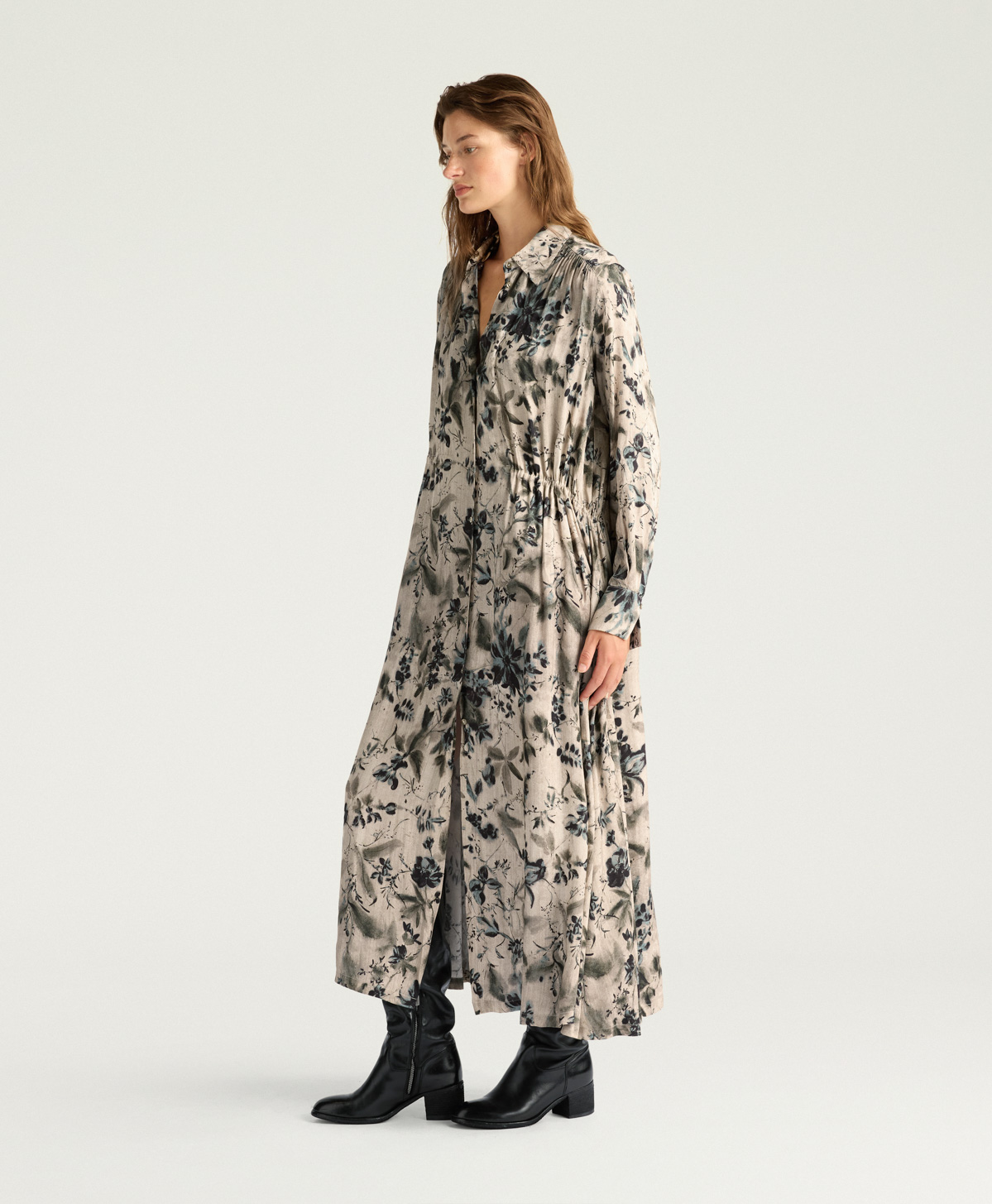Il design chemiser lungo riprende i codici classici delleleganza Momonì, reinterpretandoli con un tocco moderno grazie alla coulisse interna regolabile, che consente di personalizzare la vestibilità e definire la silhouette secondo il proprio stile. Labbottonatura frontale e i polsini con bottoni in madreperla aggiungono dettagli preziosi e sofisticati.