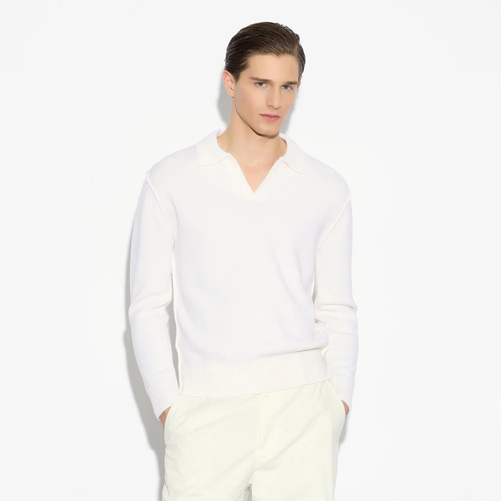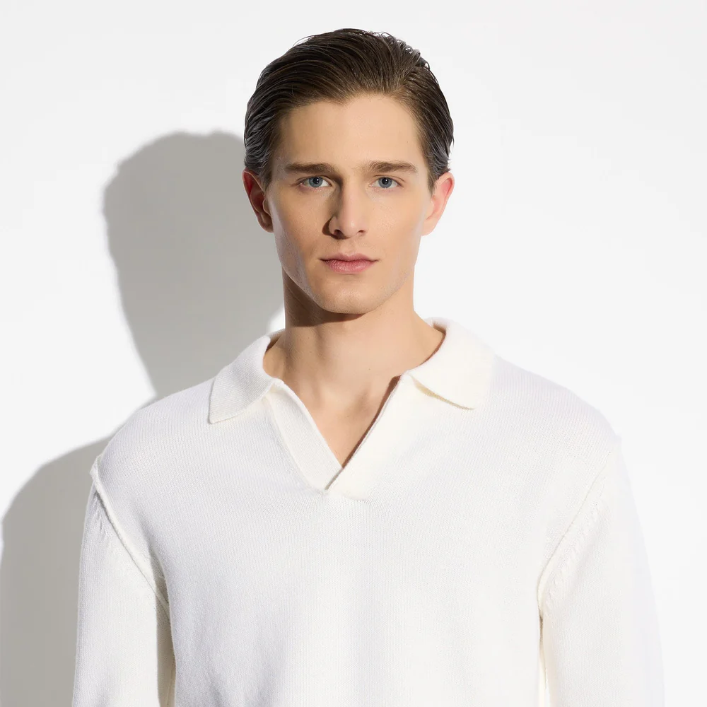 Realizzata con una lavorazione a tre fili, questa polo presenta una struttura morbida e compatta, piacevole al tatto e perfetta per accompagnare la stagione più fresca. Il colletto aperto senza bottoni definisce una linea pulita e contemporanea, mentre la vestibilità loose dona libertà di movimento e uneleganza rilassata. Grazie alla finezza extra del filato, il capo si distingue per la sua leggerezza e traspirabilità, ideale da indossare sotto una giacca o come elemento protagonista di un look casual-chic. Un esempio perfetto dellequilibrio tra stile, qualità e comfort Made in Italy.
