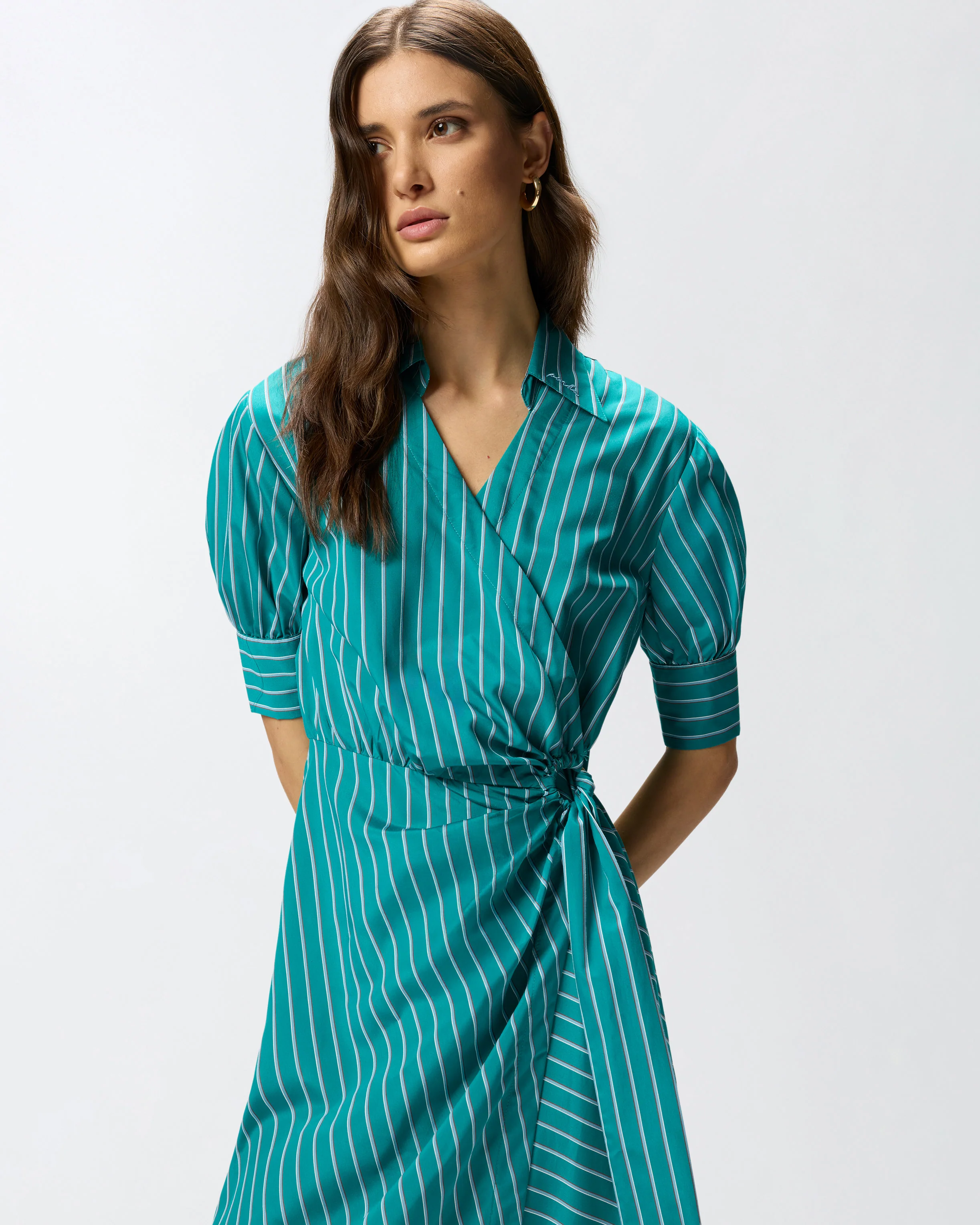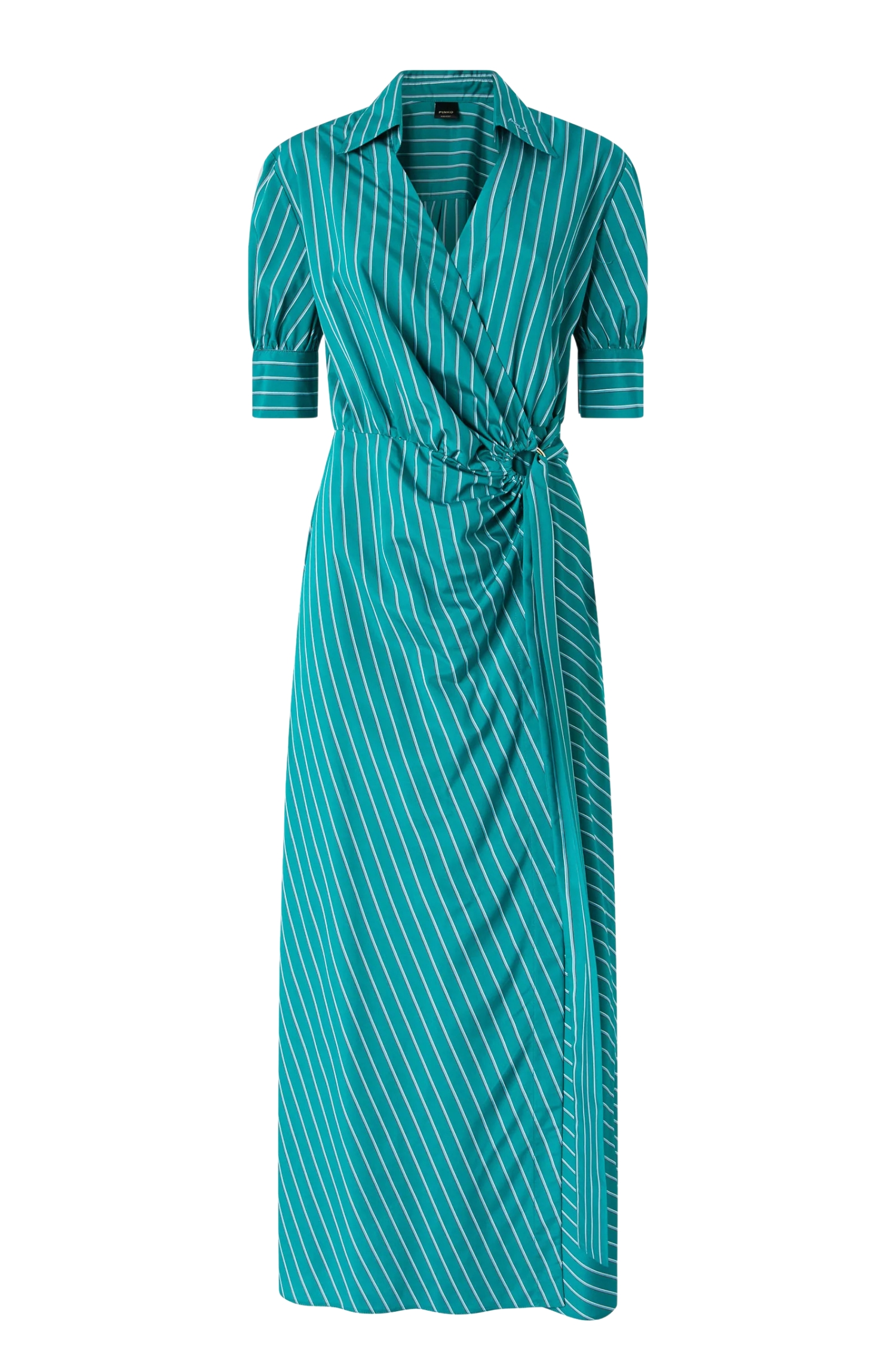 Abito Pinko Alexandra Lungo a Portafoglio in Popeline Rigato - Mezze Maniche a Palloncino