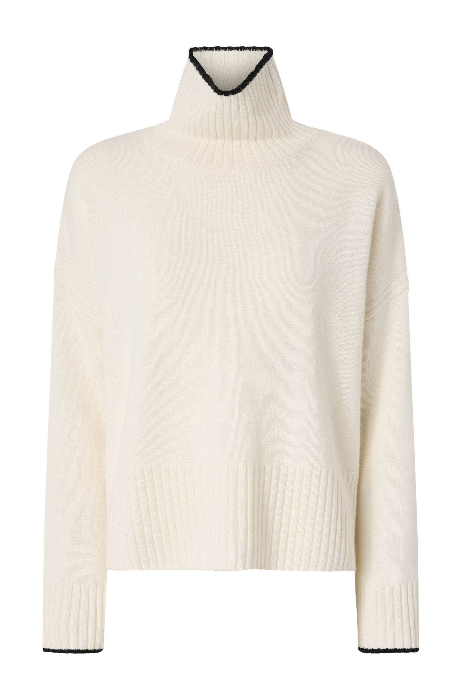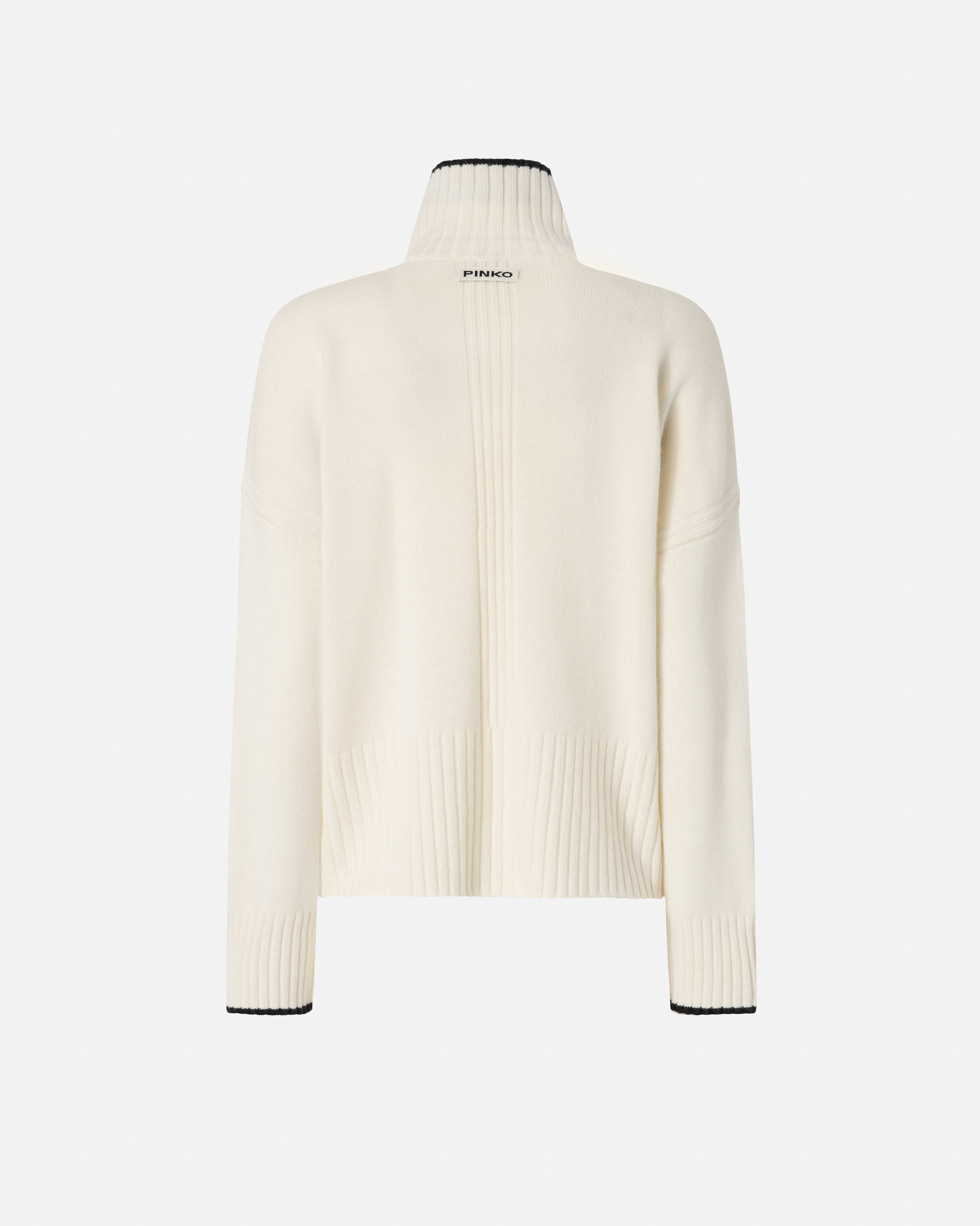 Dolcevita a maniche lunghe realizzato in morbido filato di misto lana merino e cashmere, pensato per scaldare i look della stagione fredda con uno stile essenziale e contemporaneo. Il design è rifinito con filato a contrasto su scollo e polsini, bordi a coste su collo, orlo e polsini, più etichetta con logo lettering PINKO sul retro. Il capo è stato sottoposto a specifiche prove di finissaggio per ridurre al minimo il pilling, garantendo maggiore morbidezza e durabilità del tessuto nel tempo.?