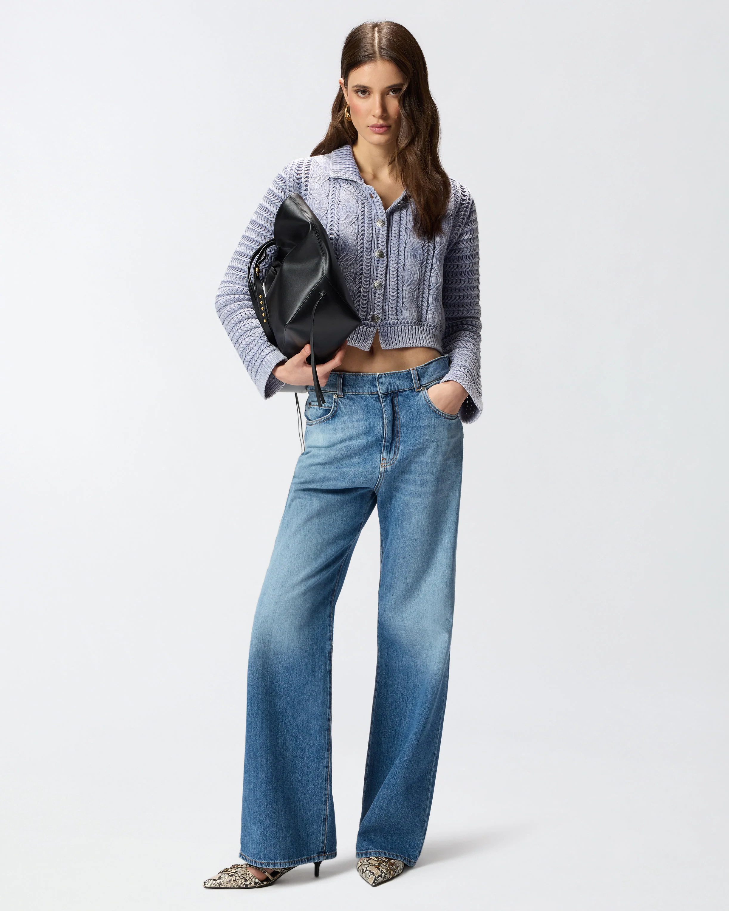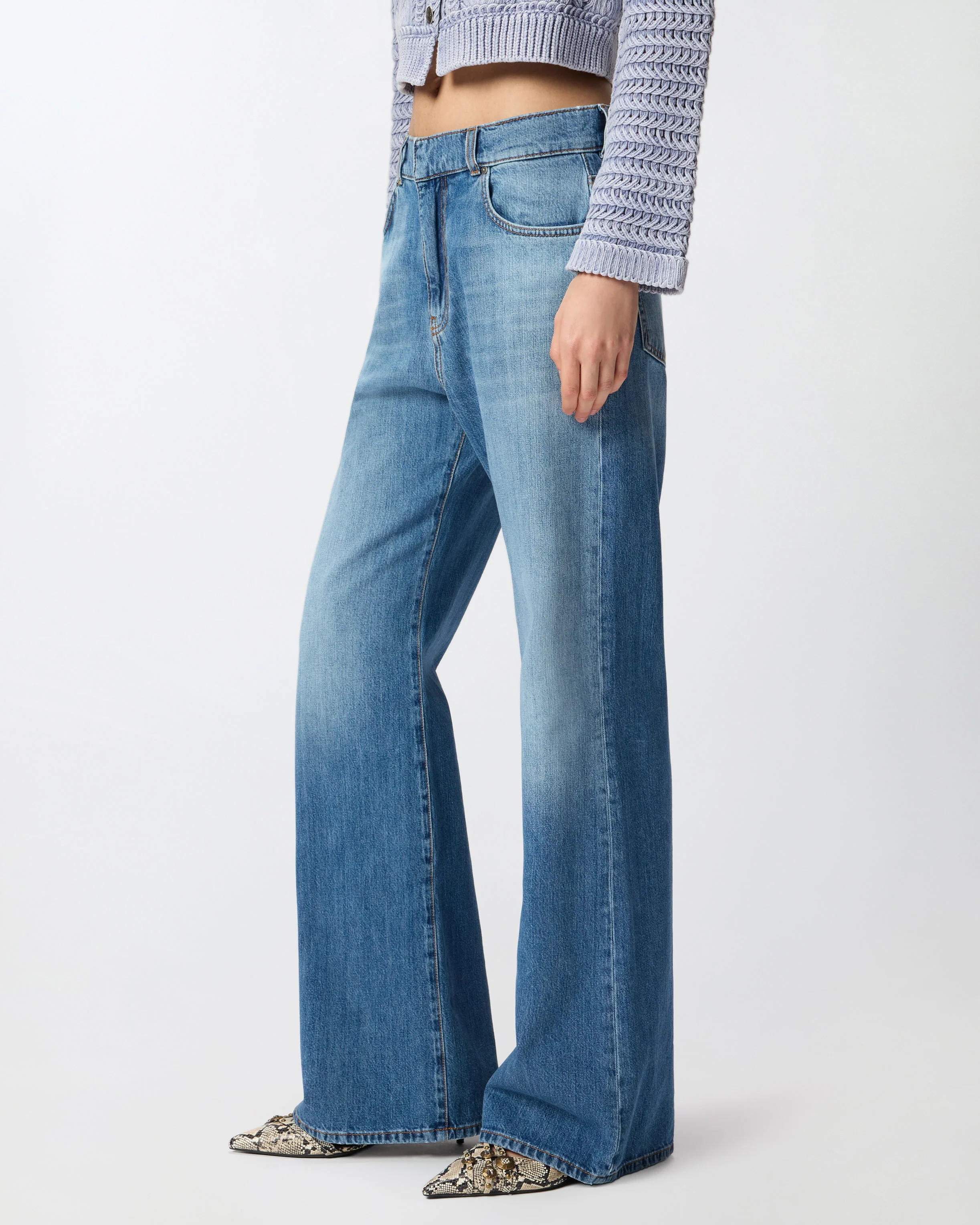 Jeans Pinko Wanda Wide Leg 5 Tasche in Denim Puro Cotone - Lavaggio Medio con Scoloriture Vintage