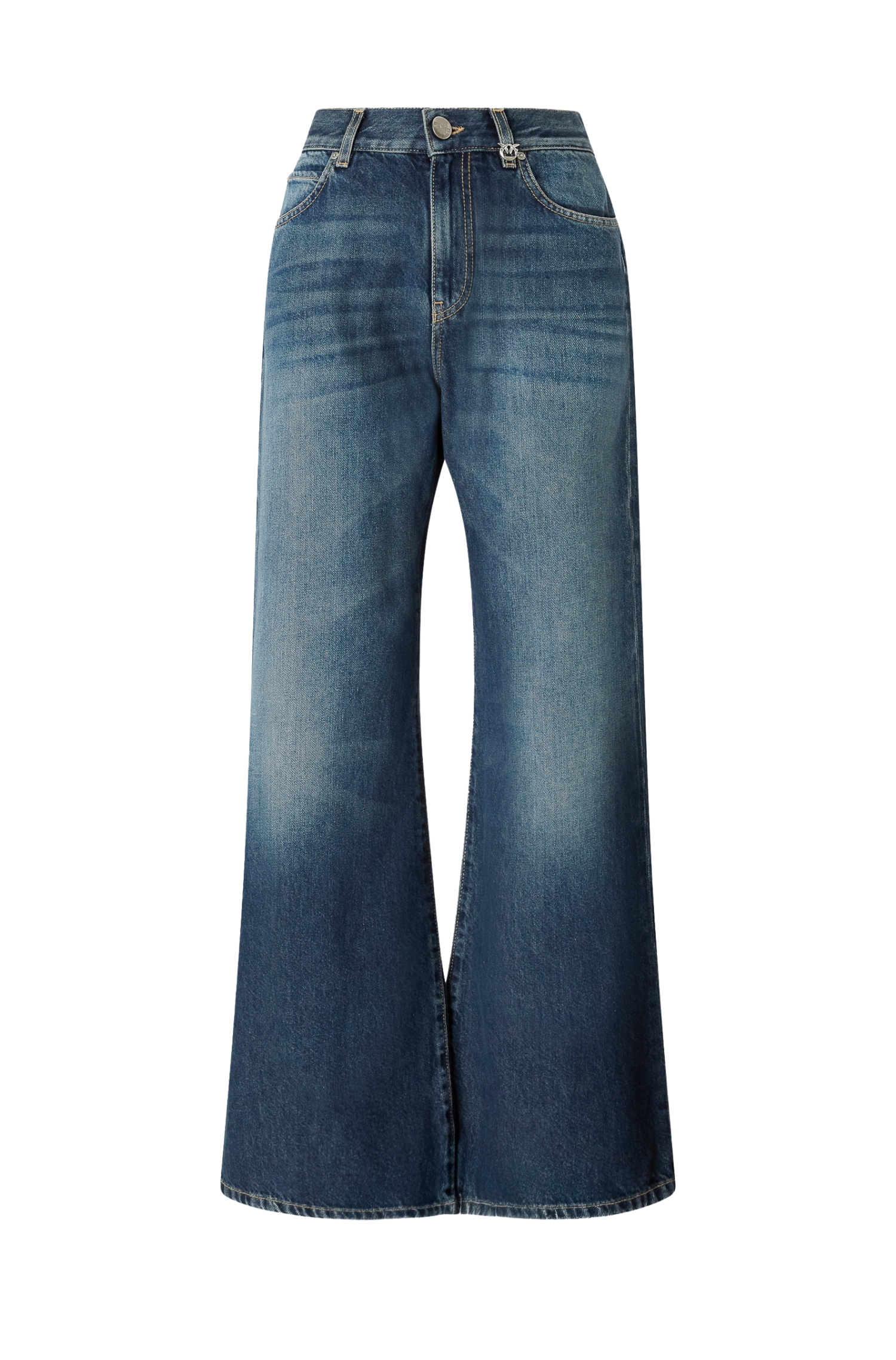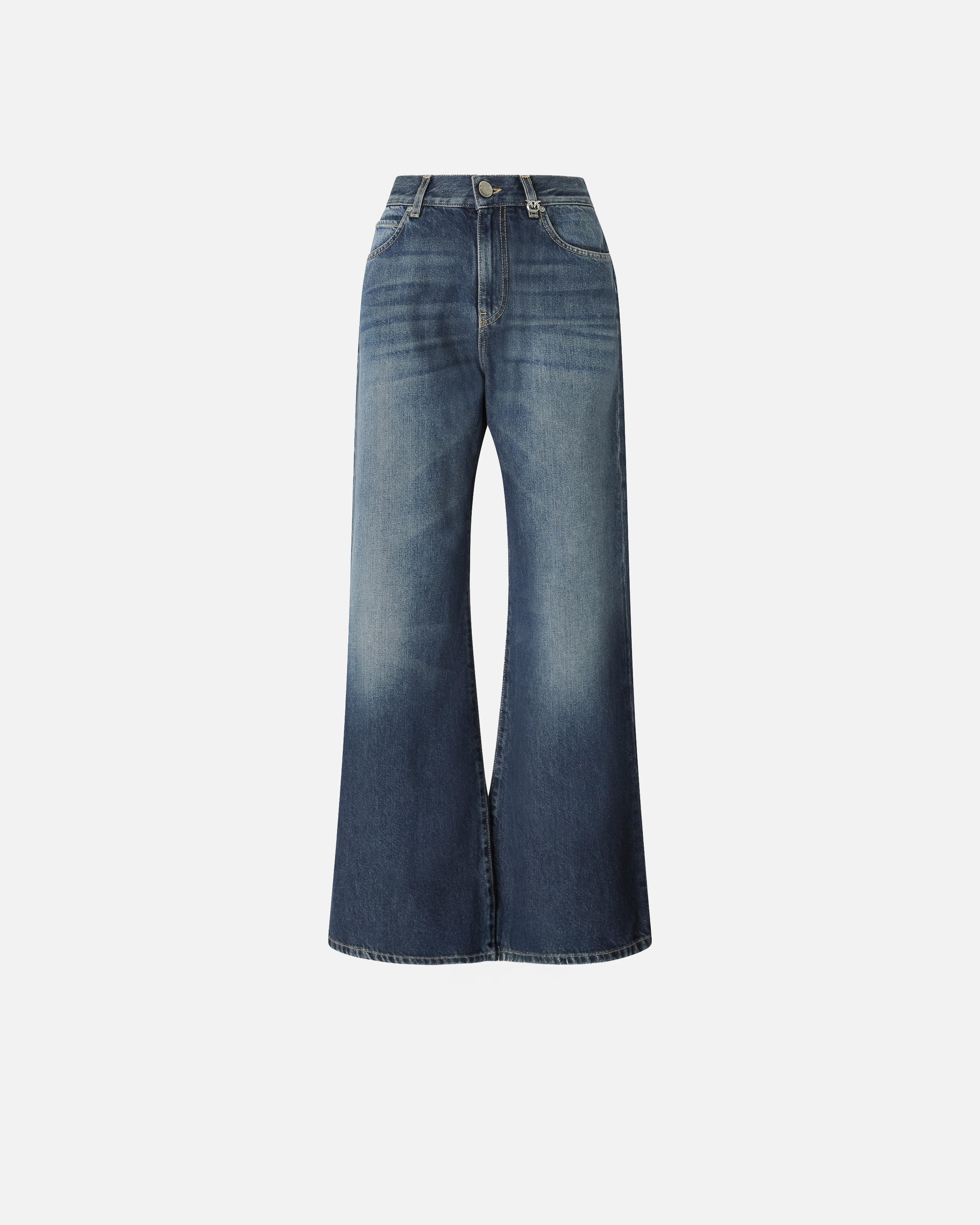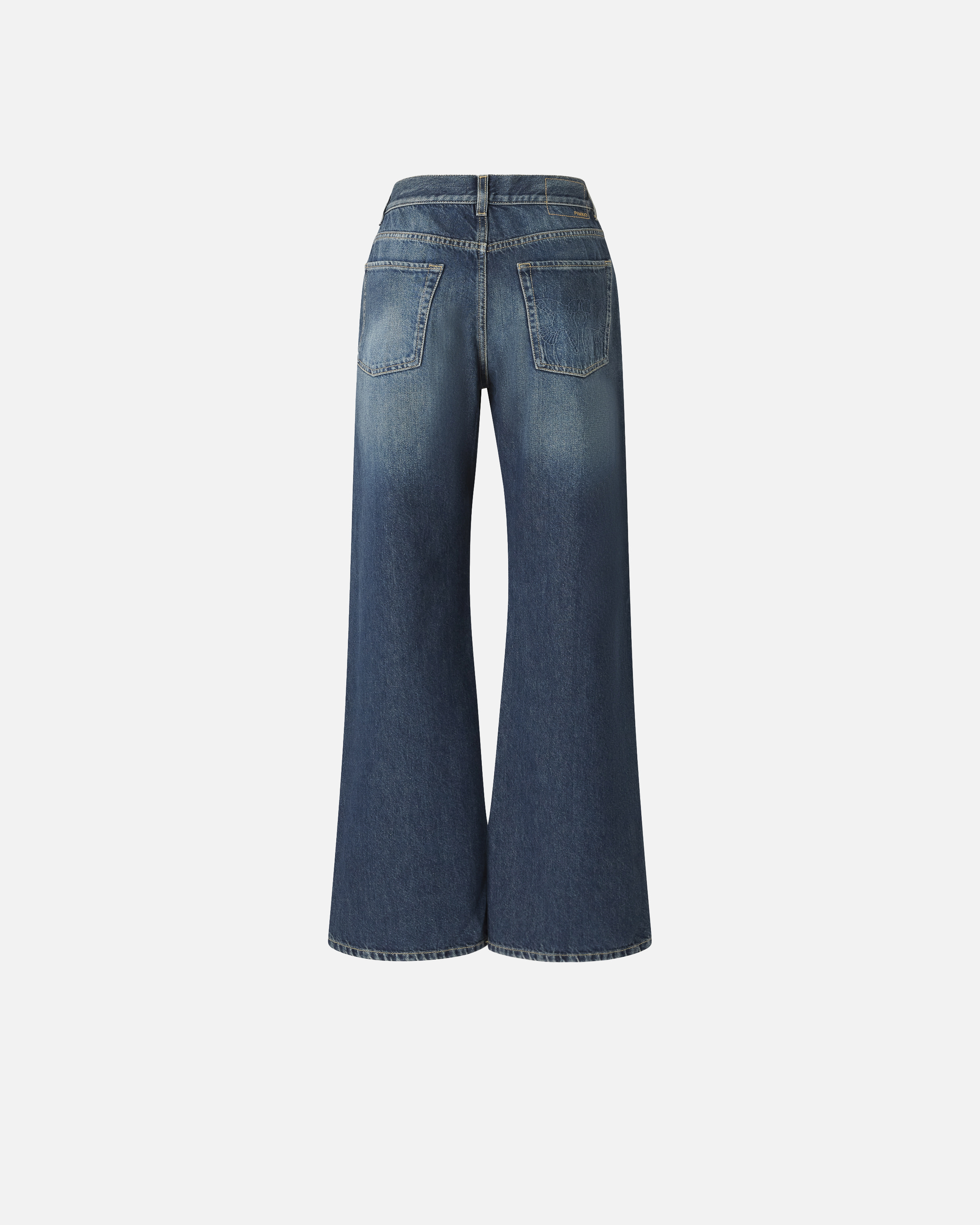 Jeans cinque tasche da donna con silhouette wide leg dalla gamba dritta e ampia, realizzati in soft denim di cotone e lyocell per una mano più fluida e confortevole. Il lavaggio stone wash dona un carattere vissuto e contemporaneo. Dettagli iconici PINKO: logo lettering ricamato sul retrocinta, logo Love Birds con uccellini ricamati sulla tasca posteriore destra e passante removibile con logo Love Birds. Da indossare con vita scesa e cavallo leggermente basso per un look più maschile, oppure da abbinare a capi femminili per un gioco di contrasti. Passanti per cintura e chiusura frontale con bottone e zip nascosta; il modello veste leggermente più ampio della taglia abituale.?