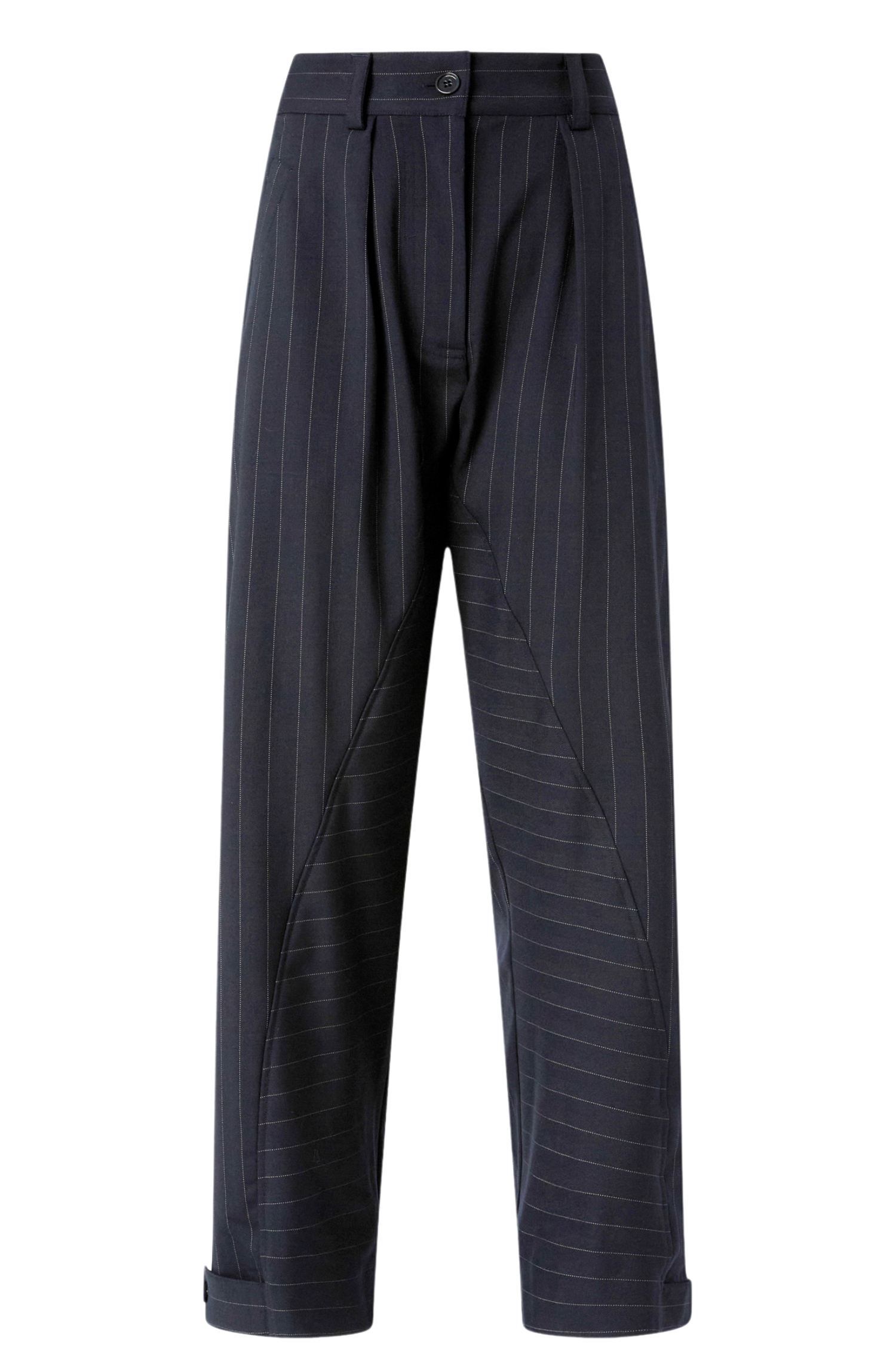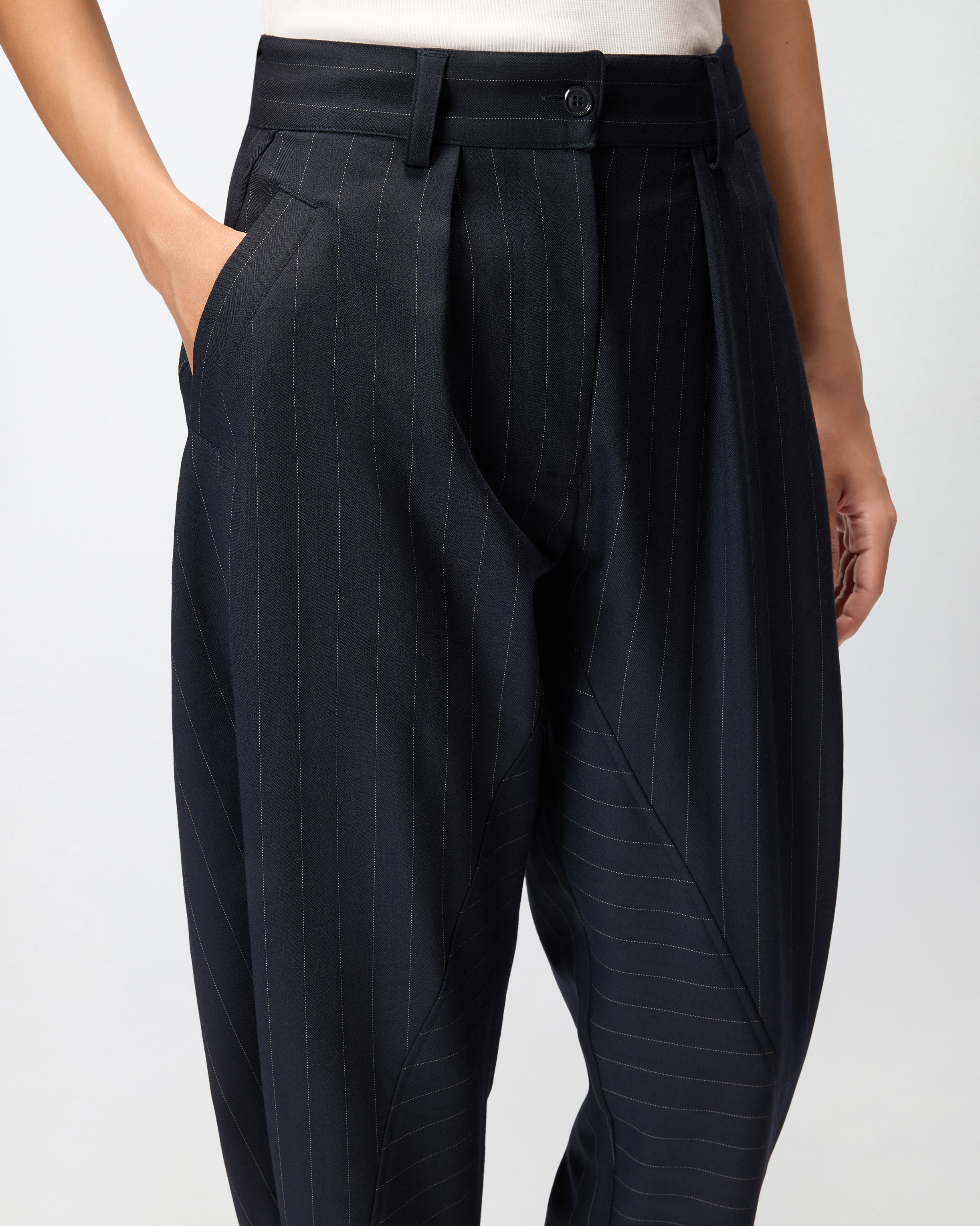 I pantaloni balloon-fit Pinko sono realizzati in pregiata lana poly dal classico disegno gessato. La gamba ampia e arrotondata nella parte superiore si stringe al fondo, regolabile tramite cinturino per scegliere la vestibilità. Pinces frontali, costruzione vita sartoriale e taschino a filetto sul retro completano il design ricercato. Da abbinare al blazer coordinato per un effetto tailleur o a una camicia per look formali e contemporanei.