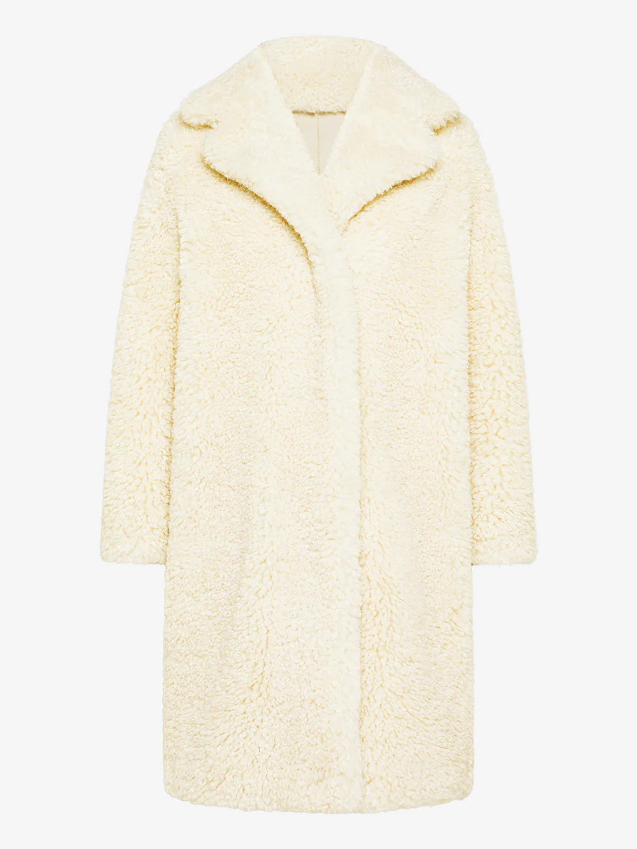 Il Lamb Coat Wom Jkt di RRD è un cappotto che fonde heritage e contemporaneità, ispirandosi al classico teddy coat degli anni 70 ma reinterpretato con linee pulite e una raffinata estetica minimalista.