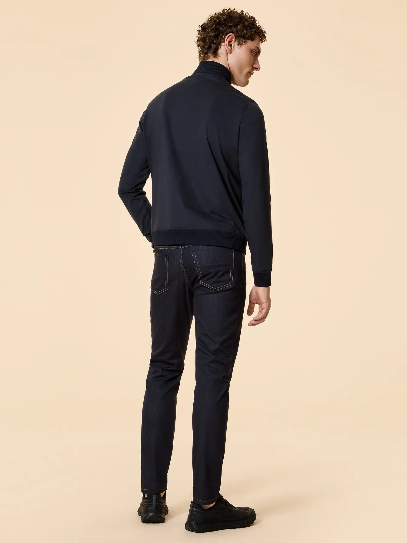 Uninterpretazione contemporanea della giacca bomber estiva, definita da linee pure e da una costruzione impeccabile. Realizzata in un pregiato micro velour a effetto suede, Nabucco Jkt conquista per la sua texture vellutata e il comfort leggero, espressione di uno stile casual sofisticato. Il design minimalista è valorizzato dalla zip metallo che caratterizza il davanti e le tasche laterali. Il colletto verticale, i polsi e il fondo in maglina millerighe stretch perfezionano la vestibilità regolare. Nellinterno foderato in eco suede, il taschino chiuso da zip invisibile rivela i dettagli distintivi del filetto arancio fluo e la tag a cuore Made with love, designed in Tuscany. Il logo nero a microiniezione sulla manica sinistra firma un capo che unisce modernità e leggerezza, ideale per interpretare con raffinata disinvoltura il look urbano quotidiano, indossato su una polo e un pantalone cinque tasche della collezione.