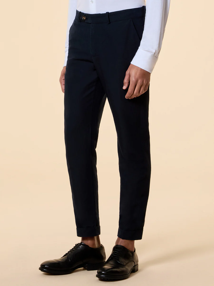 Il risvolto alla caviglia sottolinea il carattere ricercato del modello e dona una presenza impeccabile anche con calzature estive come mocassini, derby alleggerite o sneakers pulite. Perfetti per chi cerca un chino estivo elegante ma non formale, i Lynco Chino Pant sono una scelta sofisticata per un total look trasversale: più classico con Lynco Blazer, più contemporaneo con Lynco Field Jacket, più informale con Lynco Overshirt Jacket.