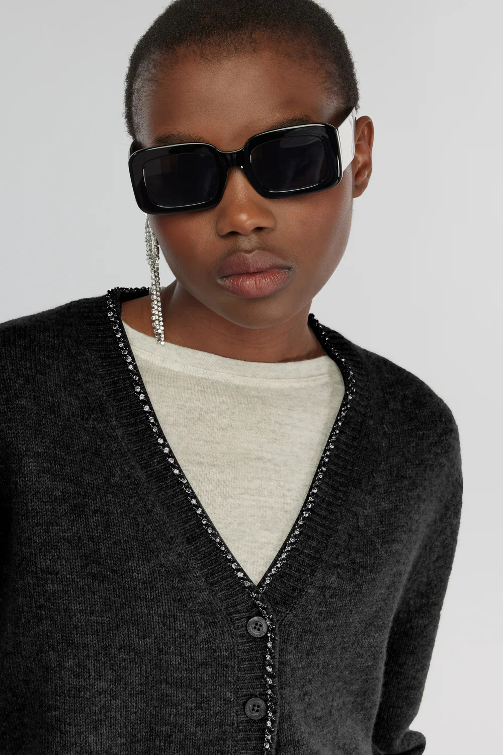 Il Cardigan Clarinda è realizzato in 90% lana vergine e 10% cashmere, una combinazione che assicura morbidezza, calore e leggerezza. La vestibilità regolare e la lunghezza al bacino valorizzano la silhouette, mentre la manica lunga e labbottonatura frontale aggiungono uneleganza classica e intramontabile. Il ricamo di strass sullo scollo a V illumina il capo con discrezione, rendendolo perfetto sia per un look da giorno curato sia per la sera. Un must-have Made in Italy, pensato per chi ama la maglieria sofisticata e versatile.