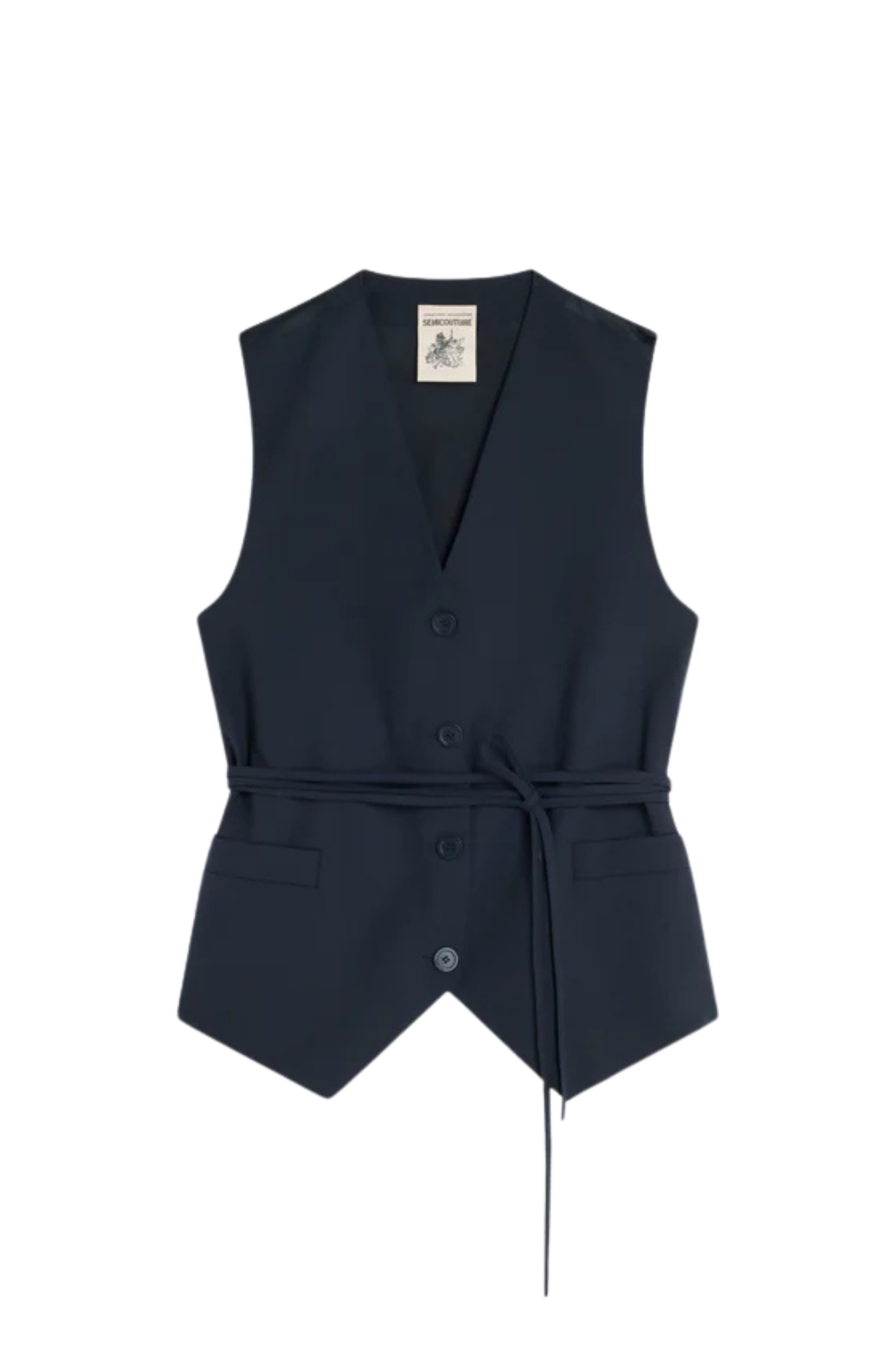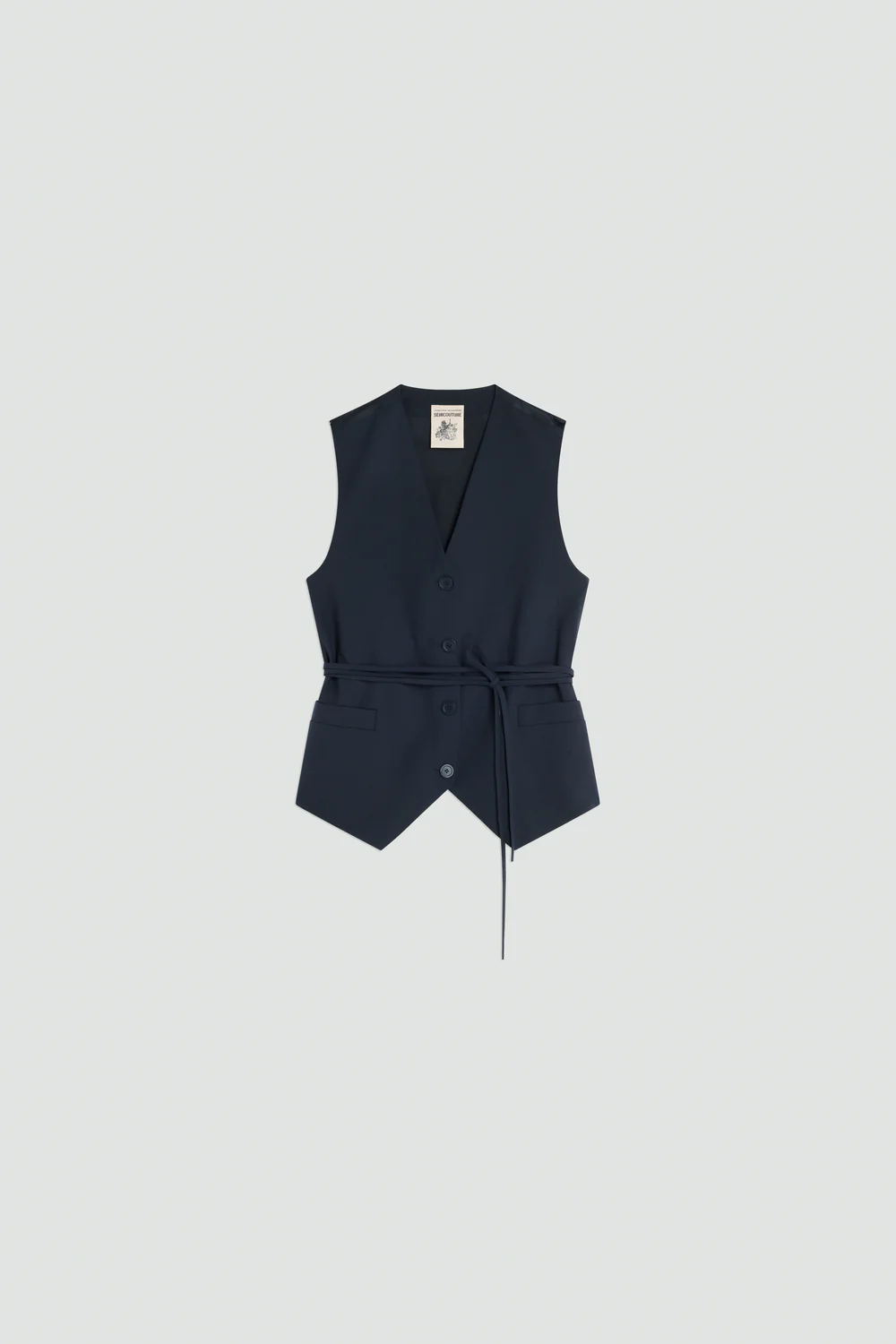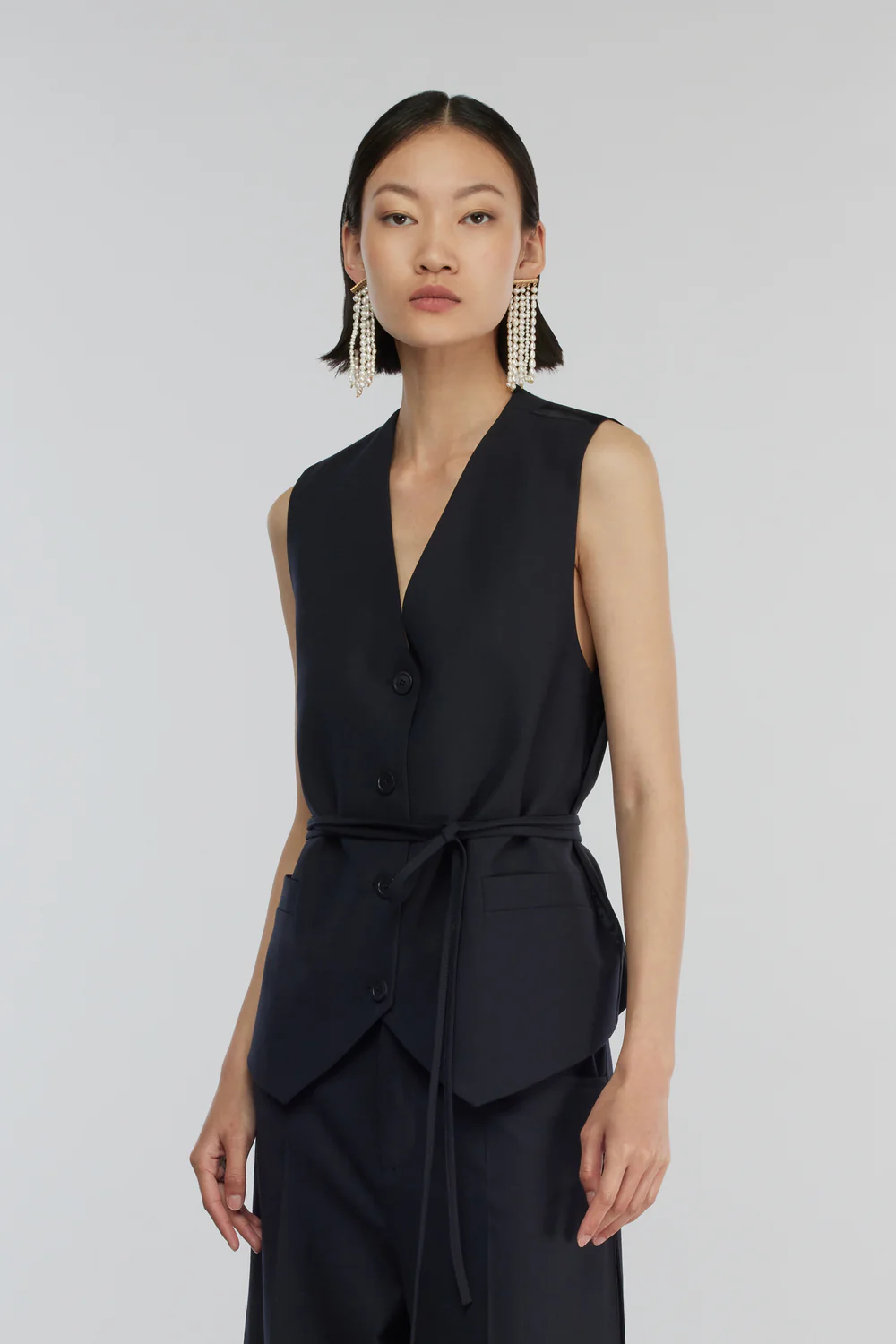 Gilet Antonina in Fresco di Lana con Cintura Semicoture