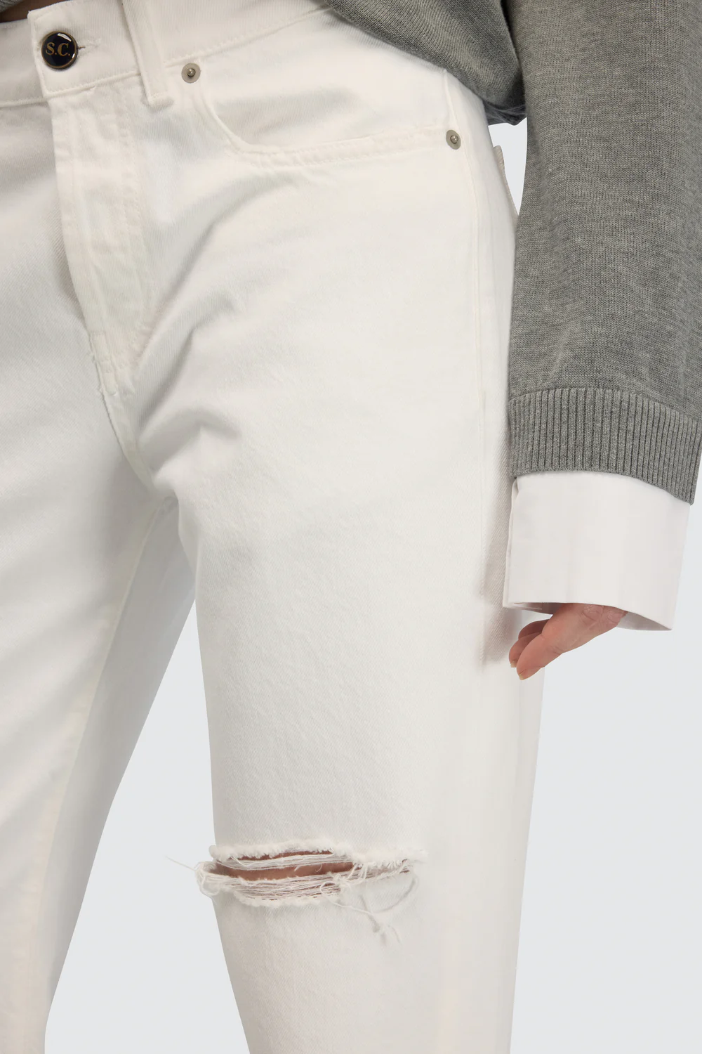 Il jeans Lucrecia di Semicouture reinterpreta il cinque tasche iconico con una gamba dritta e dettagli destroyed che donano carattere senza eccessi. La vestibilità regular lo rende comodo e facile da indossare, con una linea che valorizza la figura restando sempre portabile nella vita quotidiana.