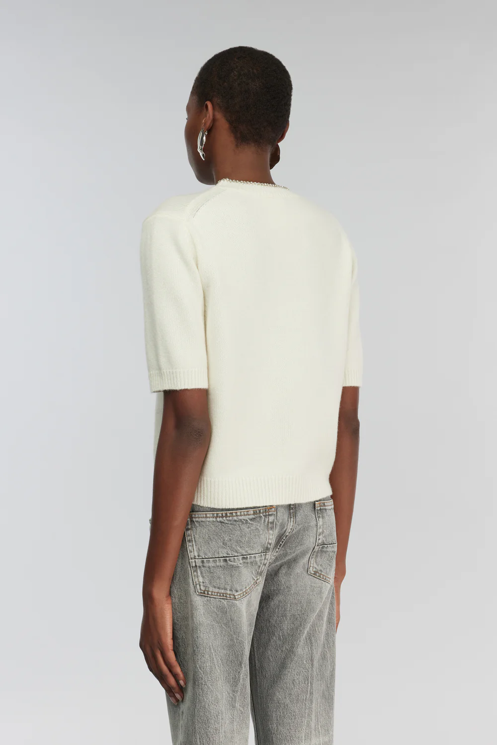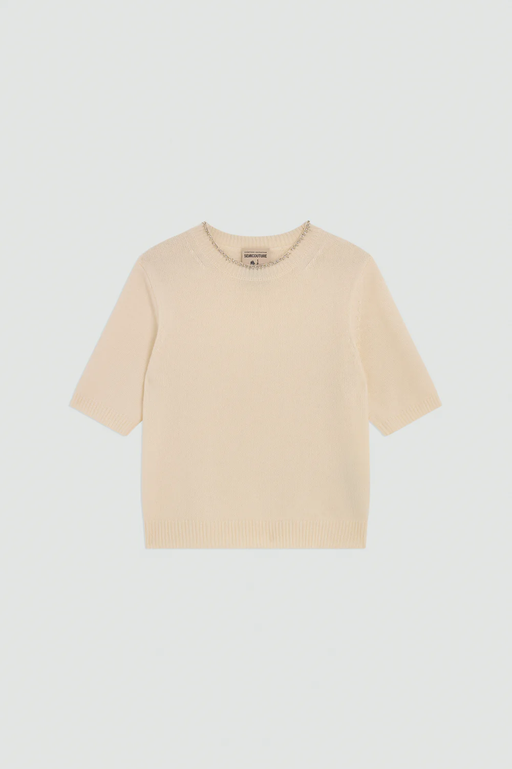 La Maglia Leya di Semicoture è un capo versatile e raffinato, pensato per chi ama la qualità dei filati naturali e lo stile pulito. Realizzata in 90% lana vergine e 10% cashmere, unisce morbidezza, calore e leggerezza, offrendo una sensazione confortevole sulla pelle. Il taglio regolare e la lunghezza al bacino garantiscono una vestibilità impeccabile, mentre il girocollo classico e le maniche corte la rendono ideale sia sotto blazer e giacche, sia indossata da sola per un look minimal-chic. Un must-have Made in Italy che esalta la semplicità come forma di eleganza.