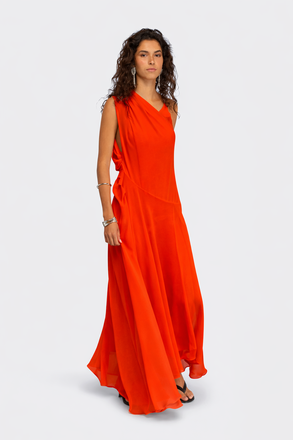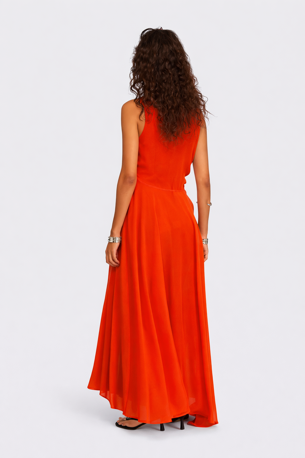 La vestibilità regular rende labito Allie adatto a diverse tipologie di fisico, mantenendo sempre un fit confortevole e armonioso. Grazie alla fluidità del georgette, questo abito lungo è perfetto da abbinare a sandali alti, décolleté o mules, completato da accessori luminosi per matrimoni, feste e serate eleganti.