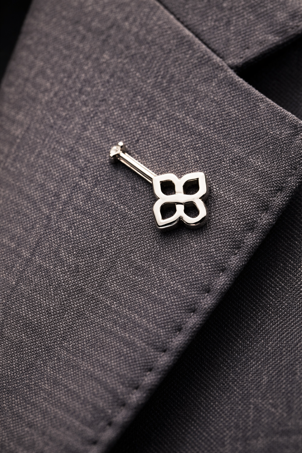 La giacca presenta una costruzione essenziale con rever classico e chiusura frontale, arricchita dalla spilla iconica Tagliatore che ne sottolinea lidentità. Le linee sono studiate per valorizzare la figura con equilibrio, senza rigidità.