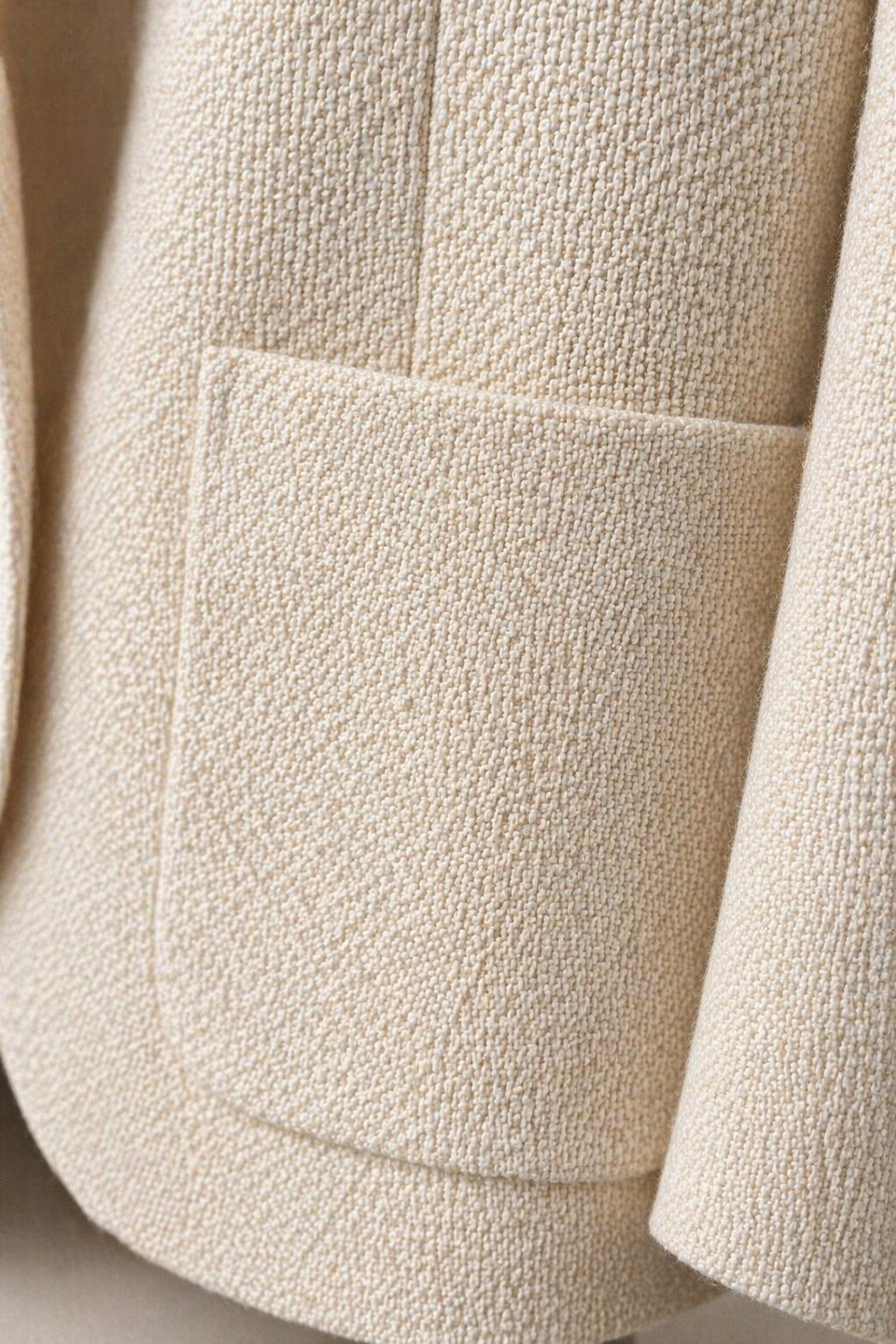 La composizione in lana vergine e lino garantisce un equilibrio ideale tra struttura e leggerezza. Il tessuto, leggermente materico, dona profondità visiva e assicura traspirabilità e comfort anche nelle giornate più calde.