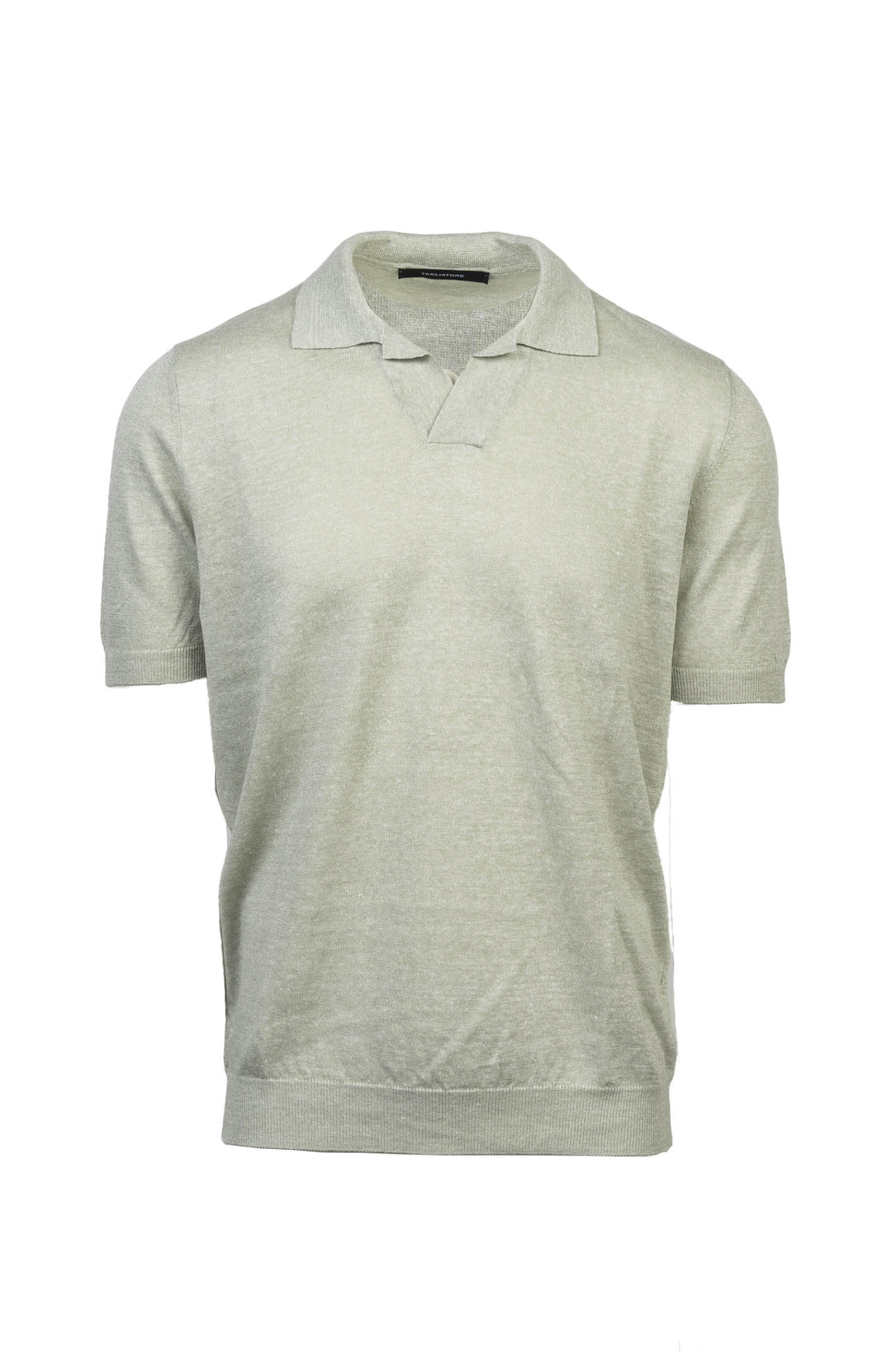 Polo a Maniche Corte in Lino e Cotone di Tagliatore in Tinta Unita