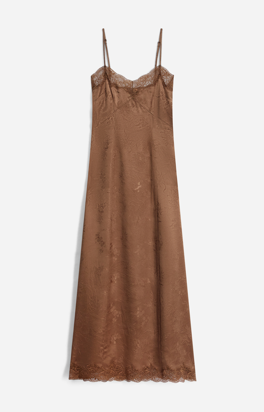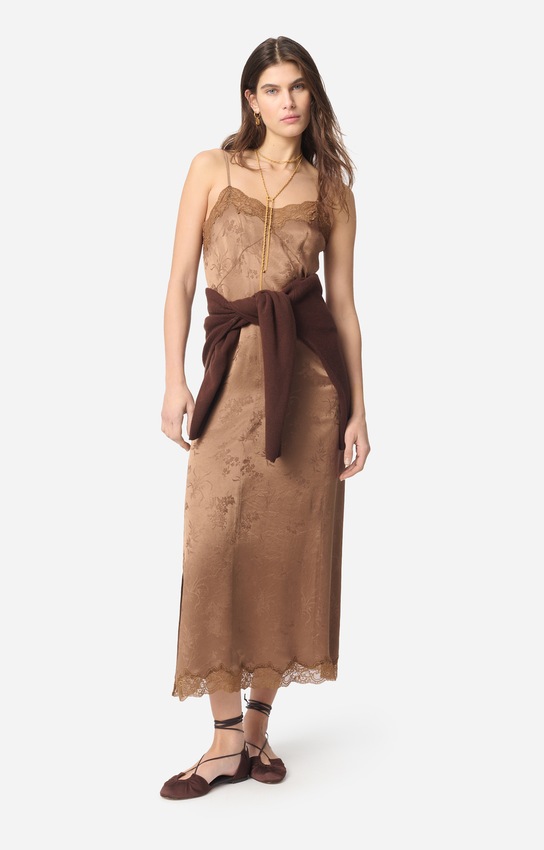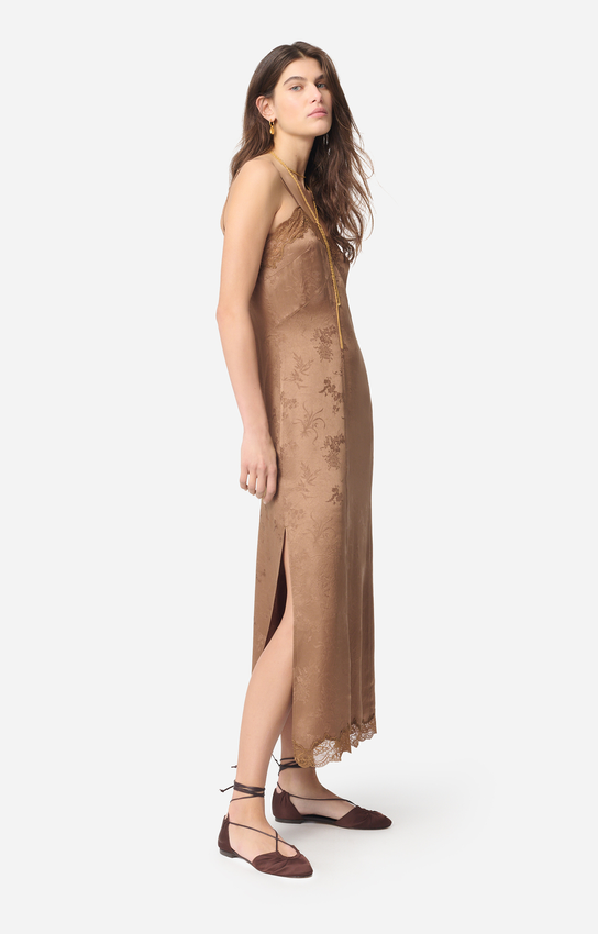 Vanessa Bruno abito lungo Givre in satin jacquard con spalline regolabili