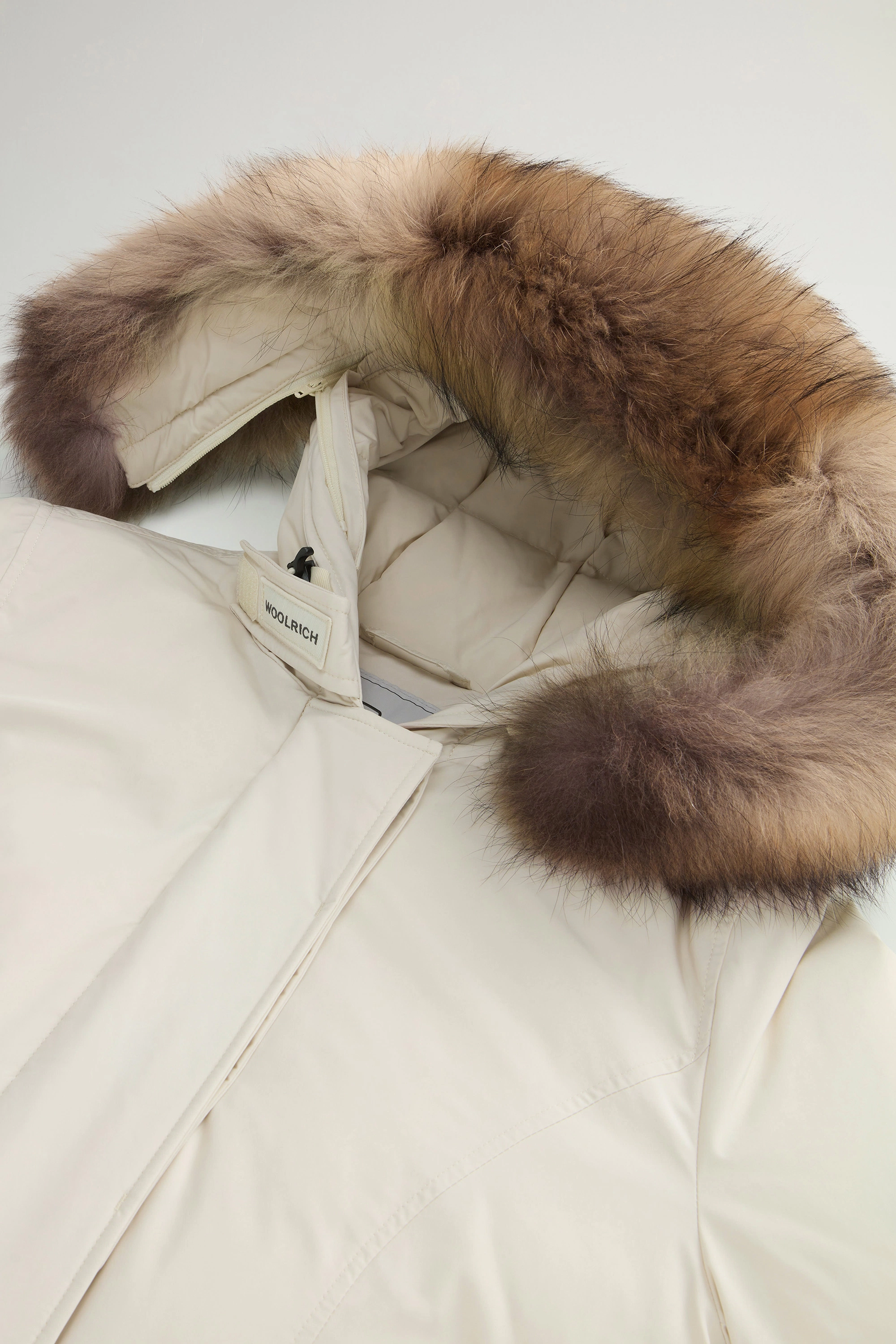 Il Luxury Arctic Parka fonde la ricca tradizione Woolrich con un tocco di femminilità, rivisitando il nostro storico modello originariamente realizzato per proteggere i lavoratori degli oleodotti dell'Alaska dai climi più rigidi. Questa interpretazione è realizzata nel nostro caratteristico tessuto Urban Touch idrorepellente, resistente al vento ed è imbottita in piuma d'anatra e completata da un ampio cappuccio. L'inserto staccabile in pelliccia di procione valorizza il design con un tocco pregiato, mentre le ampie tasche e i polsini a costine assicurano ulteriore protezione nelle giornate particolarmente fredde e ventose.
