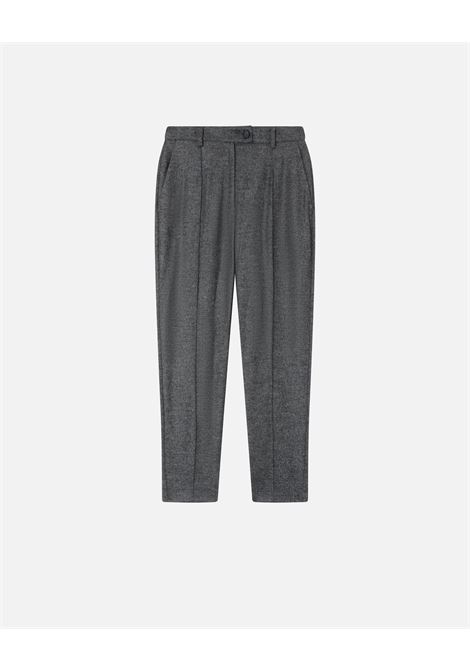 Pantaloni ampi pull-on in flanella effetto sale e pepe